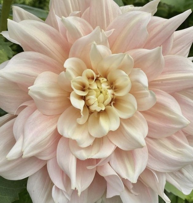 Break Out’ is a 8-10” creamy white decorative dahlia with blush and pink as you move towards the buttery yellow centers.