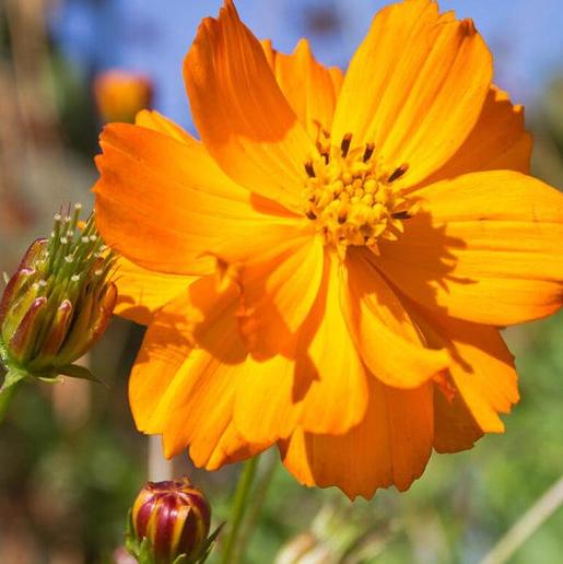 C. sulphureus. The intense dazzling yellow to reddish orange single flowers on this striking species Cosmos attracts bumblebees, birds, and beneficial insects, and looks terrific in a cut flower bouquet. Plant Bright Lights cosmos seeds in full sun. It's easy to grow in a variety of soils - tend towards the dry side. Its natural drought tolerance makes it a good candidate for xeriscaping. Plants grow to about 1m (3') tall, for the middle or front of a mixed border. Mix Bright Lights with dark blue and purple flowers for eye-catching contrast.